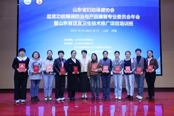 培训班课程结束后,由专业委员会主任委员、山东省妇幼保健院盆底诊治与产后康复科侯晓主任为学员代表颁发山东省适宜卫生技术结业证书。