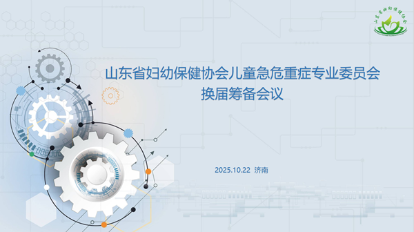 2025年10月22日,山东省妇幼保健协会儿童急危重症专业委员会换届筹备会议在济南召开。山东省妇幼保健协会秘书长杨庆臣,秘书处安祥美,儿童急危重症专委会新一届候任主任委员:山东省立医院儿童重症医学科主任靳有鹏,拟任副主任委员候选人:山东省妇幼保健院儿科副主任医师刘琳、济南市妇幼保健院儿童重症医学科主任吴巧灵、山东大学附属儿童医院儿童重症医学科主任姜琴、山东省立医院儿童重症医学科主任医师赵春等工作人员出席会议,济南市第二妇幼保健院新生儿科副主任万晓莉、泰安市妇幼保健院PICU主任薛月玲、滕州市妇幼保健院儿科主任蔡丽君、济宁医学院附属医院儿童重症医学科主任医师韩蕾、滨州医学院附属医院儿童重症医学科主任李晓梅、临沂市人民医院儿科主任韩明英参加线上会议。