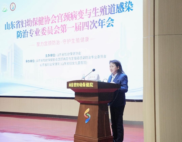 山东省妇幼保健院党委委员、山东省中医药研究院附属医院党总支书记季鹏远致辞。季鹏远书记表示,女性健康不仅关系到每个家庭的幸福,也是社会经济发展的重要基石。在众多妇科疾病中,女性生殖道感染以其高发性和高复发性,成为全球性的公共卫生挑战,且呈现出上升趋势和年轻化特征,严重威胁着女性的身心健康。生殖道的急慢性感染不仅可能导致不孕,此外,生殖道感染与宫颈病变、宫颈癌之间的密切联系也已被多项研究所证实。目前,女性对于宫颈癌的防治知识普遍不足,主动筛查的意识亟待提高。因此,实施早期筛查、诊断和治疗,加强宫颈病变与生殖道感染的防治工作显得尤为关键。今天我们聚在这里举办山东省妇幼保健协会宫颈病变与生殖道感染防治专业委员会第一届四次年会, 邀请了国内外多名知名专家讲座、临床经验分享、病例讨论,课程丰富,精彩纷呈。希望大家能有所收获,预祝本次大会圆满成功!
