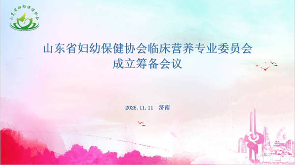 2025年11月11日,山东省妇幼保健协会临床营养专业委员会成立筹备会议在济南召开。山东省妇幼保健协会秘书长杨庆臣,副秘书长周凤荣,临床营养专委会拟任主任委员:山东省妇幼保健院临床营养科/内分泌与代谢病科副主任高辽梅;拟任副主任委员候选人:山东省立医院护理部主任护师刘霞、济南市第二妇幼保健院孕期保健科主任董雪、枣庄市妇幼保健院营养内分泌科副主任医师刘慧慧、潍坊市妇幼保健院临床营养科主任马保海、泰安市妇幼保健院临床营养科副主任医师罗巧华、聊城市妇幼保健院临床营养科主任田晓琴、临沂市妇幼保健院临床营养科主任邵明斌及专委会秘书等工作人员出席会议。