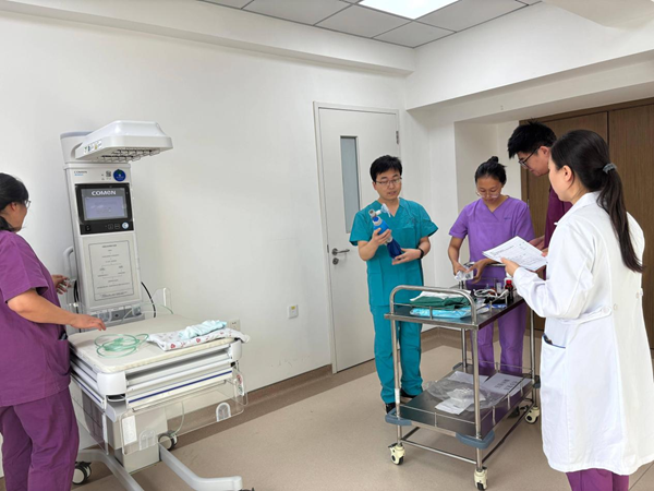 张沛佩主治医师进行初步复苏培训及指导脐静脉置管操作