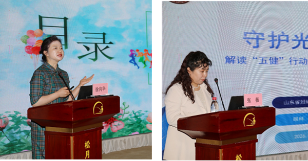在主题发言环节,两位专家聚焦儿童青少年健康关键领域作精彩分享。山东省妇幼保健协会口腔保健专业委员会主任委员、省妇幼保健院口腔科主任徐向华从儿童口腔疾病流行现状、早期筛查干预、龋齿综合防治、口腔健康宣教、基层适宜技术推广等方面进行深入讲解,为基层开展儿童口腔保健提供了专业指导和实操路径。山东省妇幼保健协会儿童眼保健分会主任委员、省妇幼保健院眼科主任张薇,解读了儿童青少年近视防控政策要求,分享眼健康筛查规范、视力发育监测、高危儿童干预、眼保健科普宣传等先进经验,助力基层提升眼保健服务专业化水平。