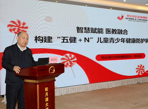 五莲县政府副县长李宗臣致辞,他指出妇女儿童健康是全民健康的重要基石,是民生福祉的重要体现。五莲县始终高度重视妇幼健康工作,通过开展儿童视力、口腔保健筛查、免费婚前孕前检查、适龄妇女两癌筛查工作等,持续加大儿童青少年健康保健、妇女保健工作投入力度。五莲将以此次会议为契机,落实“五健“行动要求,深化医校合作协同机制,健全服务网络,提升保障水平,全面推动全县妇幼健康事业再上新台阶。