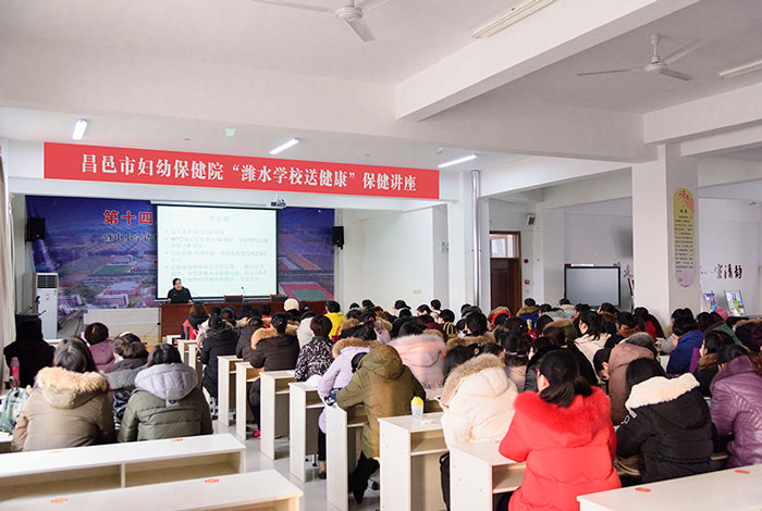 为更好地关爱女性健康,提高女教师自我保健意识及疾病防治意识,促进其身心健康,2018年2月2日上午,昌邑市妇幼保健院专家来到潍水学校,为学校女教师们举办了“潍水学校送健康”妇女保健知识讲座,100多名女教师及在校的准妈妈聆听了讲座。