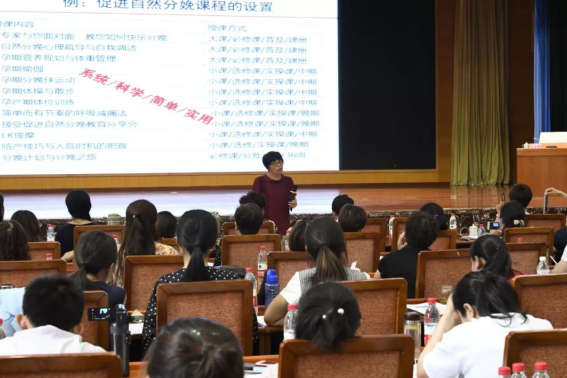 山东省各级医疗、妇幼保健机构的院长或分管院长、健教科负责人、产科主任和孕妇学校负责人等300余人参加了培训。开幕式后,中国妇幼保健协会副秘书长宋岚芹,北京宝岛医院孕妇学校校长席雪,山东省妇幼保健协会秘书长高亚莉,广东省东莞妇幼保健院主任护师余桂珍,山东省妇幼保健院产科主任傅金凤,北京五洲妇儿医院护理部主任王立新,北京妇产医院健教科主任游川,昕孕瑜伽创始人王昕分别就《如何创建示范孕妇学校》;《用做老师的方式做校长》;《山东省“师范孕妇学校”创建工作情况》;《孕妇学校课程设置以及授课技巧》;《孕妇营养及体重管理》;《新生儿护理》;《孕产妇运动》;《孕产妇瑜伽26体式》等课程进行交流分享。