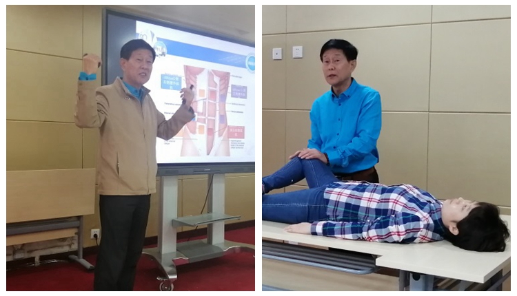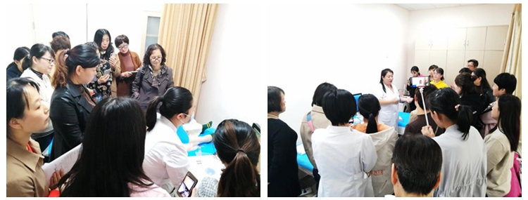 李春静博士:《盆底肌筋膜综合征的诊疗流程》(右) 山东省妇幼保健院盆底诊治中心工作人员为学员进行细致的盆底功能筛查、盆底康复治疗的操作演示与培训
