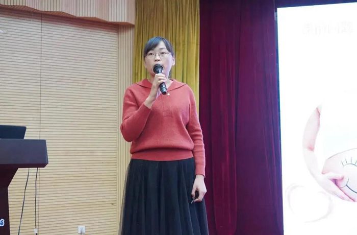学术讲座 ▷威海市妇幼保健院宣传教育科科长、孕妇学校副校长谭雅琴主持学术讲座。