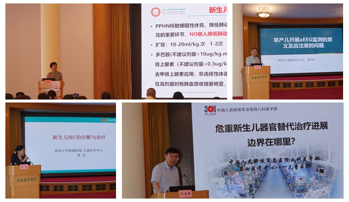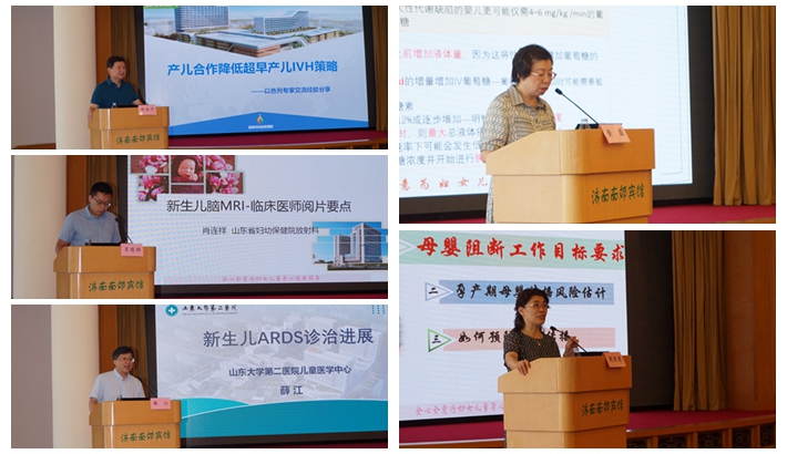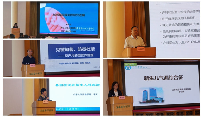 开幕式结束即开始学术会议。各位专家通过线上、线下相结合的方式给与会人员带来精彩授课。复旦大学附属儿科医院周文浩教授、王来栓教授通过线上方式,分别就题目为《新生儿罕见疾病的早期诊断和治疗》、《早产儿脑损伤的全链条管理》进行了授课。浙江大学附属儿童医院施丽萍教授、深圳市儿童医院黄为民教授、青岛大学附属医院姜红教授、中国人民解放军总医院第七医学中心八一儿童医院封志纯教授、青岛妇女儿童医院单若冰教授、山东大学附属山东省妇幼保健院王谢桐教授、韩厚美医生、张沛佩医生、中国科技技术大学附属第一医院陈名武教授、山东大学齐鲁儿童医院李晓莺教授、山东大学齐鲁医院李文教授、山东大学附属山东省妇幼保健院孔敏教授、重庆医科大学附属儿童医院史源教授、湖北省妇幼保健院夏世文教授、山东第一医科大学附属省立医院韩波教授、山东大学第二医院薛江教授、山东大学附属山东省妇幼保健院黄磊教授、淄博市妇幼保健院牛世平教授、山东大学附属山东省妇幼保健院肖连祥教授、山东大学附属山东省妇幼保健院周凤荣教授通过线下方式分别就题目为《新生儿休克的诊治》、《早产儿开展aEEG监测的意义及应注意的问题》、《新生儿NEC的诊断与治疗》、《危重新生儿器官替代治疗进展边界在哪里?》、《绒毛膜羊膜炎的研究进展》、《胎母输血综合征MDT》、《见微知著,防微杜渐—早产儿的微营养管理》、《新生儿气漏综合征》、《基因检测技术在新生儿中的应用》、《新生儿细菌性脑膜炎的诊治进展》、《新生儿呼吸支持模式的选择》、《NICU中细菌耐药性分析及临床对策》、《新生儿心律失常的诊断和治疗》、《新生儿ARDS诊治进展》、《新生儿低血糖的处理》、《产儿合作降低超早产儿IVH策略》、《新生儿脑MRI-临床医师阅片要点》、《母婴传播与婴儿喂养》进行了内容丰富的讲座。