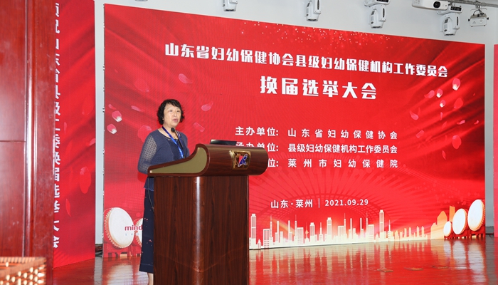 2021年9月29日,由山东省妇幼保健协会主办,山东省妇幼保健协会县级妇幼保健机构工作委员会承办,莱州市妇幼保健院协办的山东省妇幼保健协会县级妇幼保健机构工作委员会换届选举大会暨第二届一次年会在莱州顺利召开,来自全省各级妇幼机构及医疗机构的代表150余人参加了会议。中国妇幼保健协会常务副会长兼秘书长于小千、副秘书长宫露霞、互联网与产业合作办公室主任金磊,山东省妇幼保健协会常务副会长、山东大学附属山东省妇幼保健院党委书记郑世存,山东省妇幼保健协会秘书长高亚莉、副秘书长安祥美,中国妇幼保健协会县级工作委员会主任委员胡辰生,烟台市卫健委副主任张爱玲、妇幼科科长刘咏梅,烟台市妇幼保健院副院长丛芳、莱州市政府副市长杨喜平,莱州市卫健局局长王风珠及莱州市妇幼保健院党委书记杨楠等出席了会议。会议选举产生了山东省妇幼保健协会县级妇幼保健机构工作委员会第二届委员会,莱州市妇幼保健院党委书记杨楠当选为新一届县级妇幼保健机构工作委员会主任委员。第二届县级妇幼保健机构工作委员会聘任第一届主任委员胡辰生为名誉主任委员。