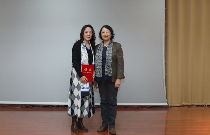 协会秘书李丽宣读专业委员会成立批文和《聘任名誉主任委员的批复》