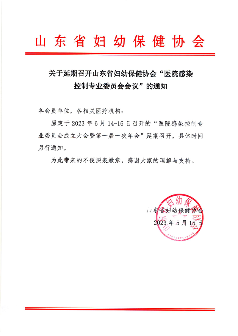 关于延期召开山东省妇幼保健协会“医院感染控制专业委员会会议”的通知
