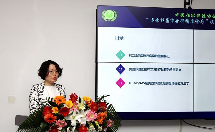 项目组高立梅博士作了题为《质谱技术在多囊卵巢综合征精准诊疗中的应用》的报告。高立梅博士指出,质谱法是检测类固醇雄激素的金标准,相较于免疫法,质谱法具有更高的灵敏度和结果稳定性,与高雄激素的体征相关性更强。国内外多个指南和共识推荐使用经验证的液相色谱串联质谱进行PCOS人群的雄激素检测。