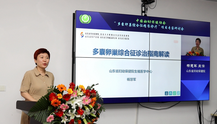 山东省妇幼保健协会生育保健分会主任委员、山东省妇幼保健院生殖中心主任杨慧军进行了题为《多囊卵巢综合征诊治指南解读》的主题演讲。杨慧军主任介绍了国际和国内PCOS最新的诊疗指南,重点分享了《PCOS国际循证医学指南(2023年版)》和《多囊卵巢综合征诊治路径专家共识(2023版)》的要点和更新内容。