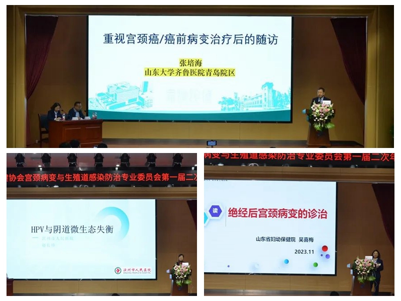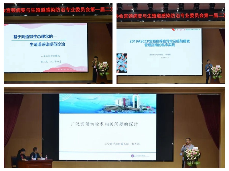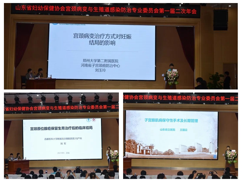 开幕式结束后即开始第一届二次年会。郑州大学第二附属医院主任医师刘玉玲、首都医科大学附属北京朝阳医院刘军教授、山东省立医院王国云教授、济宁医学院附属医院彭存旭教授、山东省妇幼保健院董玉燕主任、深圳市妇幼保健院主任医师胡海燕、山东大学齐鲁医院(青岛院区)张培海教授、滨州市妇幼保健院主任医师赵长珍、山东省妇幼保健院副主任医师吴喜梅分别就题目为《宫颈病变治疗方式对妊娠结局的影响》,《宫颈原位腺癌保留生育治疗后的临床结局》,《子宫腺肌病保守性手术及长期管理》,《广泛宫颈切除术相关问题的探讨》,《基于阴道微生态理念的--生殖道感染规范诊治》,《2019ASCCP宫颈癌筛查异常及癌前病变管理指南的临床实践》,《重视宫颈癌/癌前病变治疗后的随访》,《HPV与阴道微生态失衡》,《绝经后宫颈病变的诊治》进行了授课。