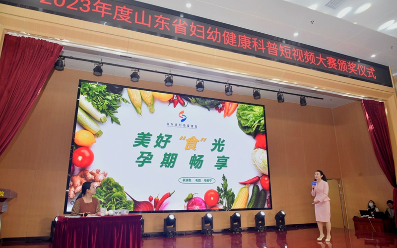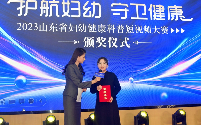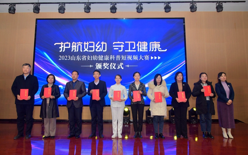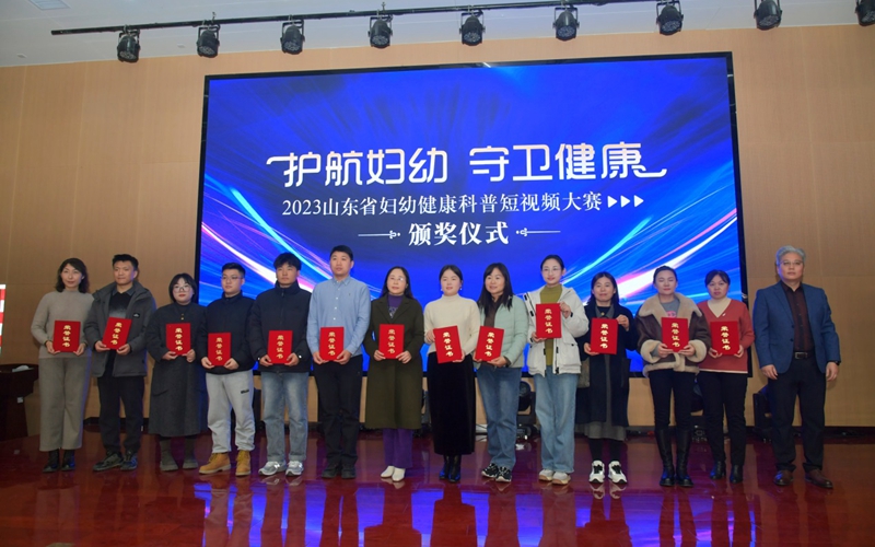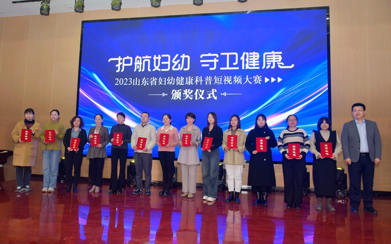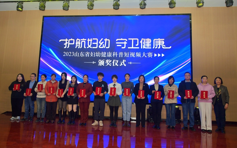 12月28日, 在山东省卫生健康委的大力支持下,由山东省妇幼保健协会、齐鲁晚报·齐鲁壹点联合主办的“护航妇幼 守卫健康”——2023年度山东省妇幼健康科普短视频大赛颁奖仪式在济南成功举办。大赛获奖人员、妇幼健康领域专家、媒体记者等150余人参加活动。现场对100件获奖作品进行了表彰,并颁发了10个优秀组织奖和2个特别贡献奖。承载着满满的医学智慧力量,发出健康科普的最强音。