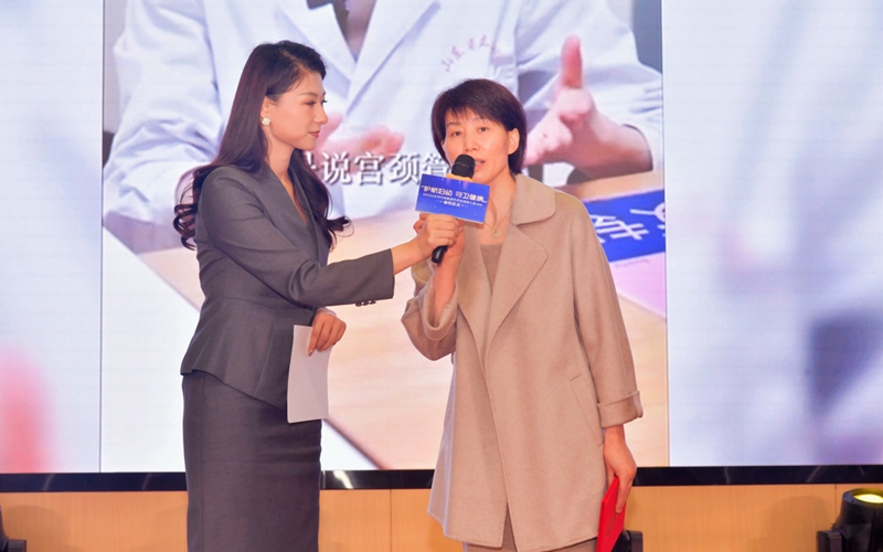 二等奖获奖代表董玉燕接受采访,针对对宫颈癌防治及预防方面进行了分享