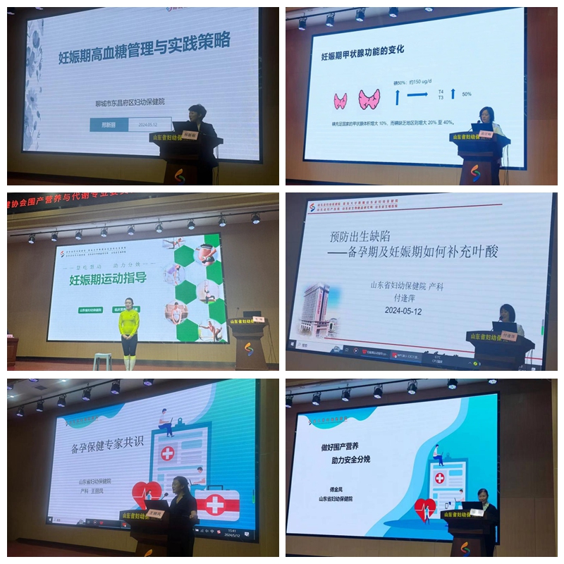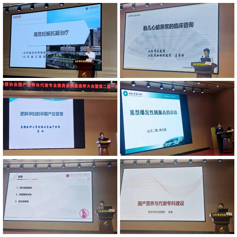 换届大会后即召开二届一次年会,山东省妇幼保健院院长王谢桐教授带来了《高危妊娠抗凝治疗》精彩讲解;山东省妇幼保健院孕产保健部首席专家左常婷教授阐述了《胎儿心脏异常的临床咨询》;首都医科大学附属北京妇产医院范玲教授为大家讲解了《肥胖孕妇的孕期产后管理》;山东大学第二医院产科主任洪凡真为大家分享了《重型爆发性胰腺炎的诊治》;济南市妇幼保健院产科主任杨秋红、枣庄市妇幼保健院营养内分泌科主任金晨、聊城市东昌府区妇幼保健院孕产保健部部长邢新丽、山东省妇幼保健院临床营养科副主任高辽梅、山东省妇幼保健院临床营养科主管护师毛璐、山东省妇幼保健院副主任医师付逢萍、山东省妇幼保健院副主任医师王丽凤、山东省妇幼保健院孕产保健部主任傅金凤分别分享并探讨了孕期铁水平与母婴健康、围产营养与代谢专科建设、妊娠期高血糖管理与实践策略、妊娠期甲状腺疾病的诊治、妊娠期运动指导、预防出生缺陷——备孕期及妊娠期如何补充叶酸、备孕保健专家共识、做好围产营养助力安全分娩等内容。通过本次会议,参会委员们认真聆听,积极互动,交流了思想,为进一步提升和发展打下了良好基础。