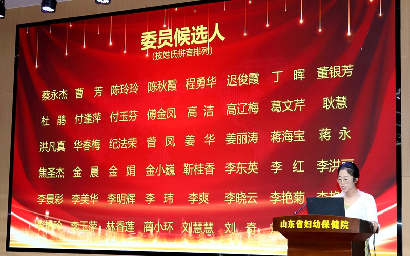 换届选举大会由山东省妇幼保健协会秘书长高亚莉主持,第一届主任委员傅金凤作第一届专业委员会总结及第二届专业委员会筹备工作汇报,秘书马娟宣读第二届围产营养与代谢专业委员会候选名单。