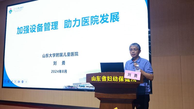 山东大学附属儿童医院设备科主任刘勇,以“加强设备管理,助力医院发展”为主题,讲解了设备维修及质量控制、设备效益分析、科室人员绩效分配,分析了科室存在的问题。