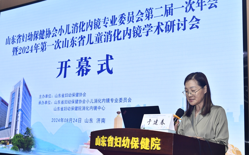 山东省妇幼保健院党委副书记于建春讲话:荷花三百里,草木正葱茏。金秋八月,在这个充满收获的季节里,我们很荣幸邀请到省内外知名专家为我们授课、解惑、传经送宝,就小儿消化内镜相关的多方面知识进行交流学习,通过此次大会,对小儿消化内镜医学领域的前沿观点、新技术、新概念、新方法进行交流和研讨。希望以此次大会为契机,促进山东省小儿消化内镜更高水平、更高质量的发展。