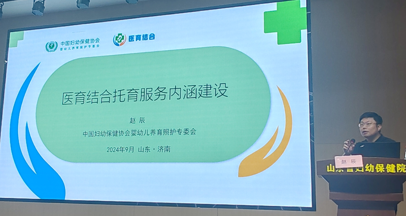 中国妇幼保健协会婴幼儿养育照护专委会的赵辰副秘书长从初心与思考、医育结合概念、医育结合实践内容和医育结合整体解决方案四个方面讲述了医育结合托育服务的建设,着力打造中国特色“医育结合”养育照护服务模式,建立行业可持续发展模式。